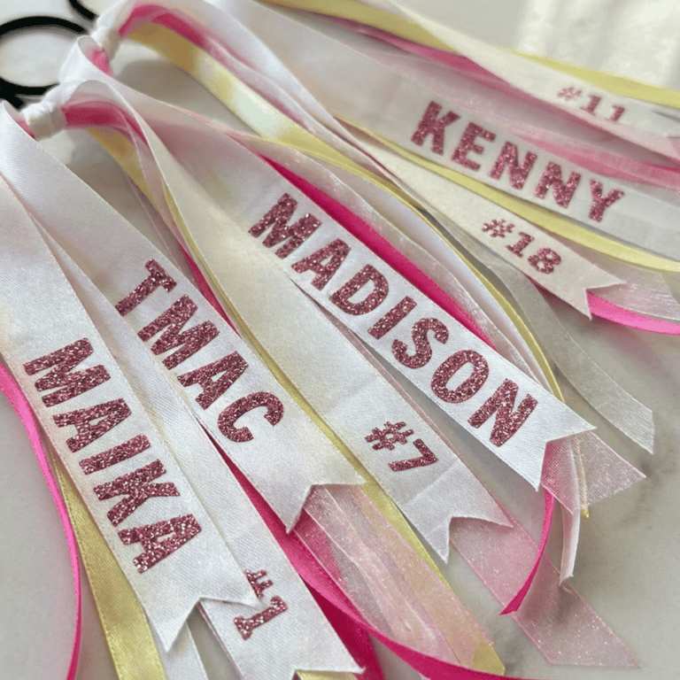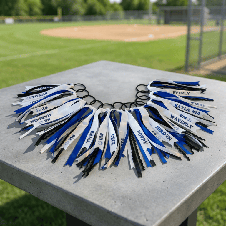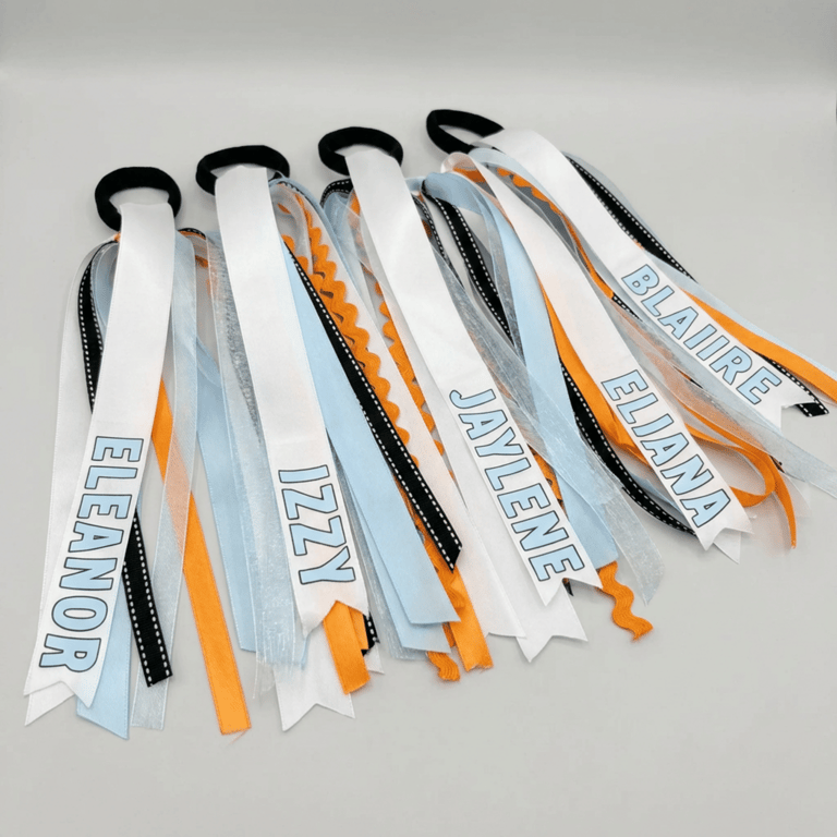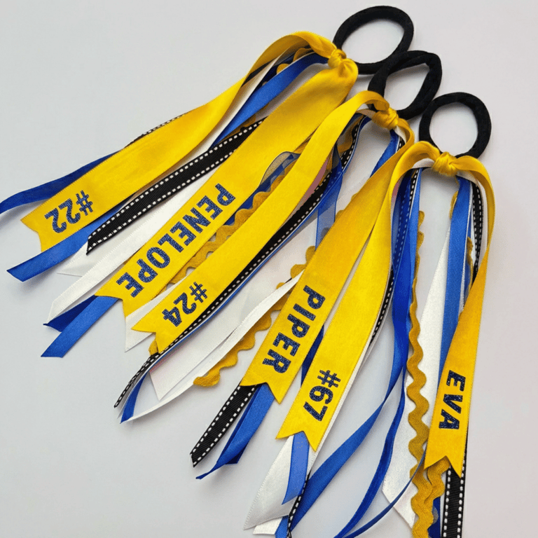 Designed to match your team’s colors and style, our custom hair ribbons bring identity and energy onto the field. Personalized with names, numbers, or team details, these are a favorite for game days, tournaments, and team photos.